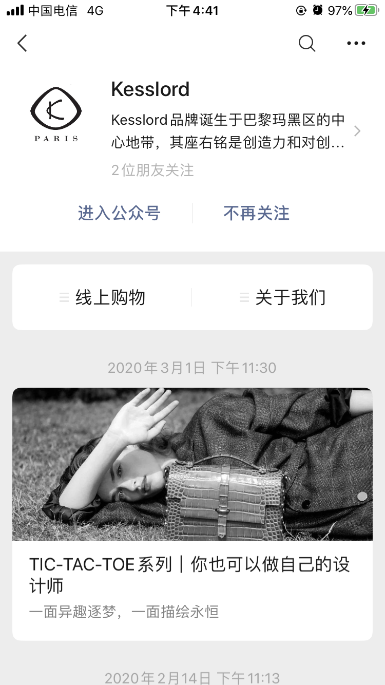 French Kesslord brand passed the registration and certification of the French WeChat official account by us, it adopted the second phase of the micro-shang interactive small program mall.